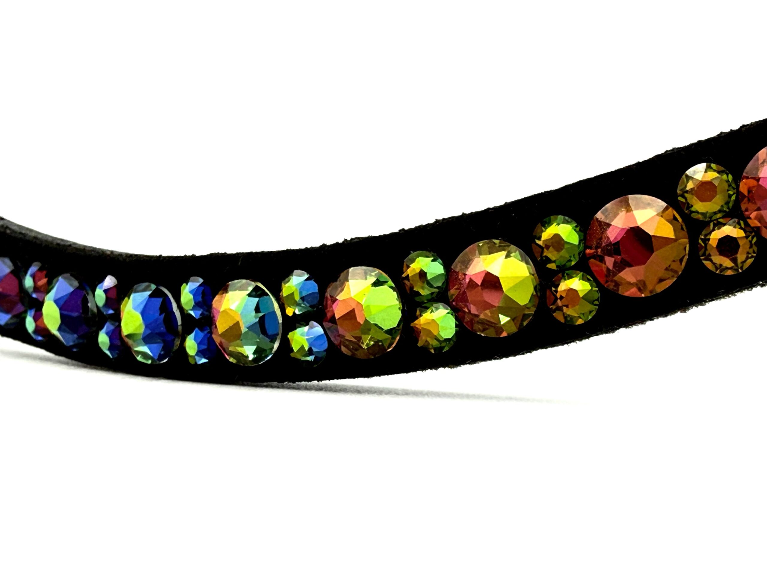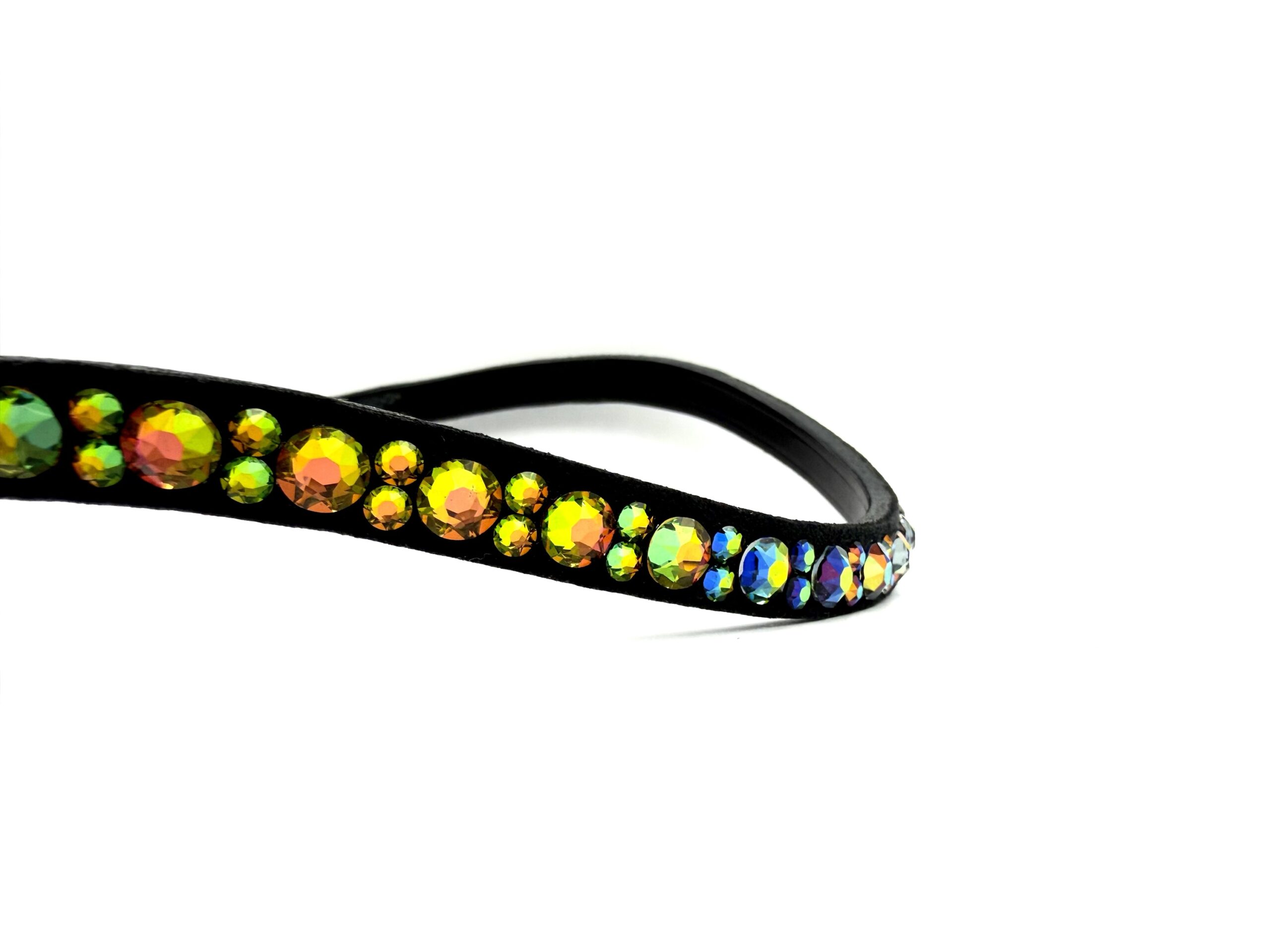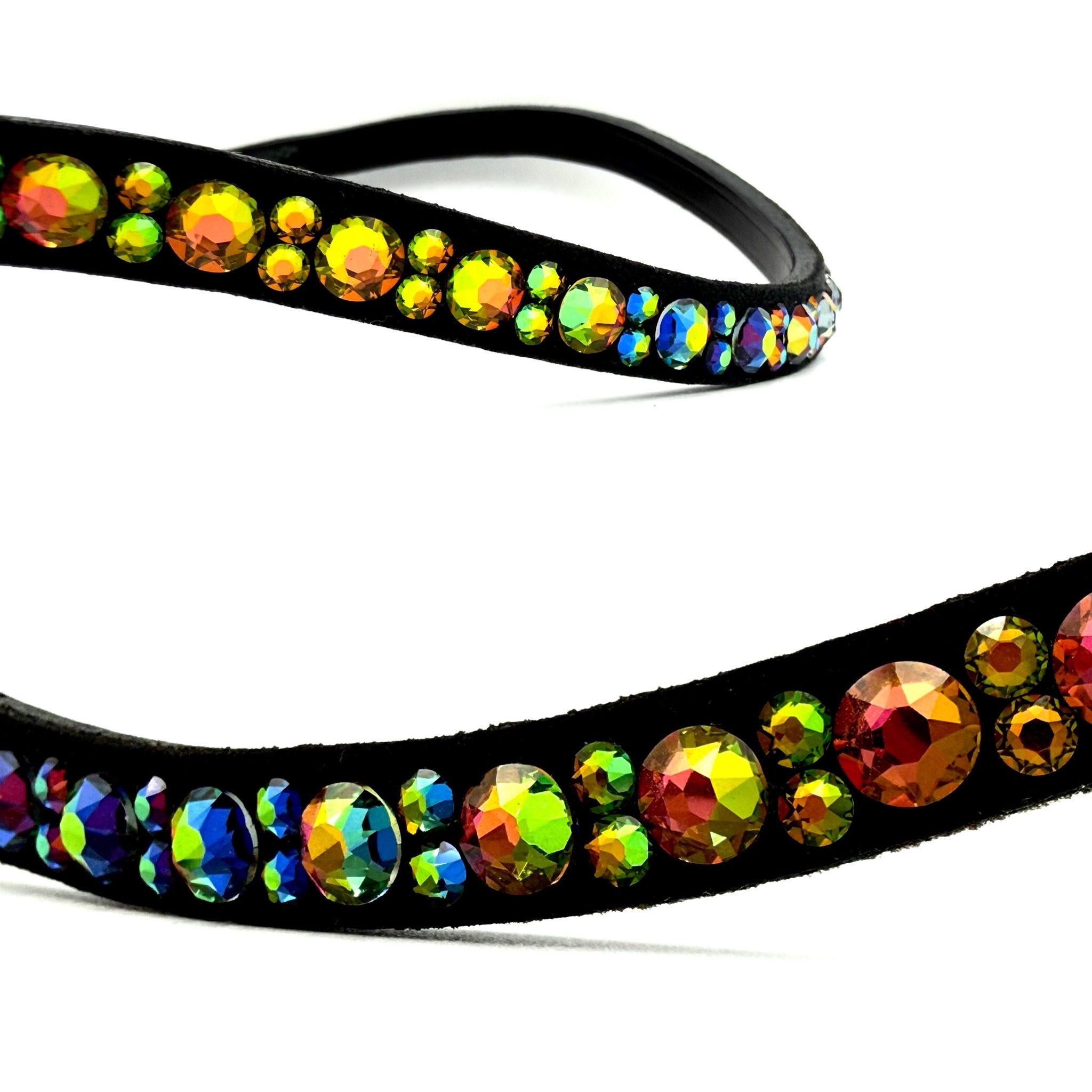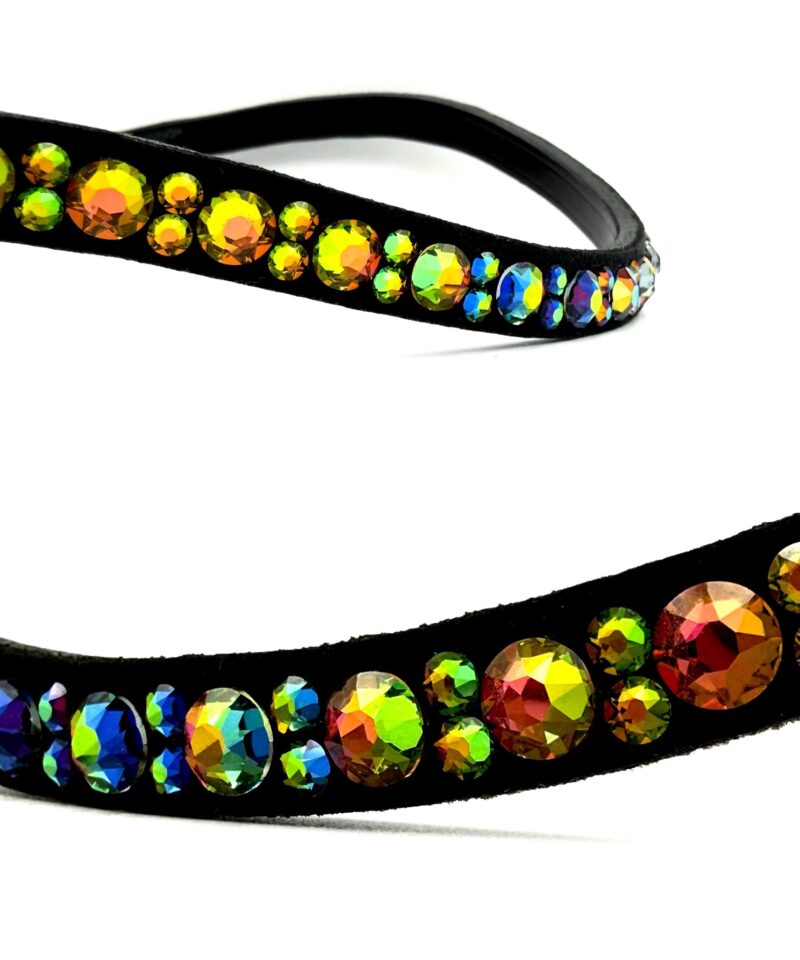 Połączenie najwyższej jakości rzemiosła z unikalnym blaskiem kryształów sprawia, że Aurora Glow to więcej niż element ogłowia – to biżuteria dla Twojego konia.